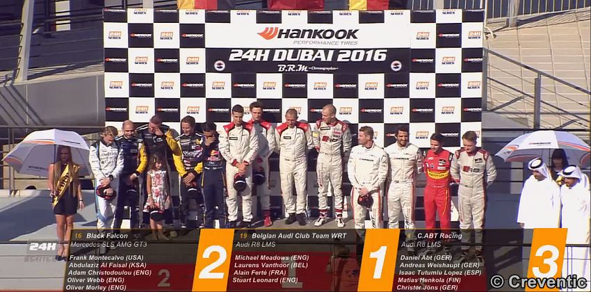| A6 | 3 | Black Falcon / Germany | Mercedes AMG GT3 (6200cc) | Abdulaziz Al Faisal / Hubert Haupt / Yelmer Buurman / Michal Broniszewski / Maro Engel |