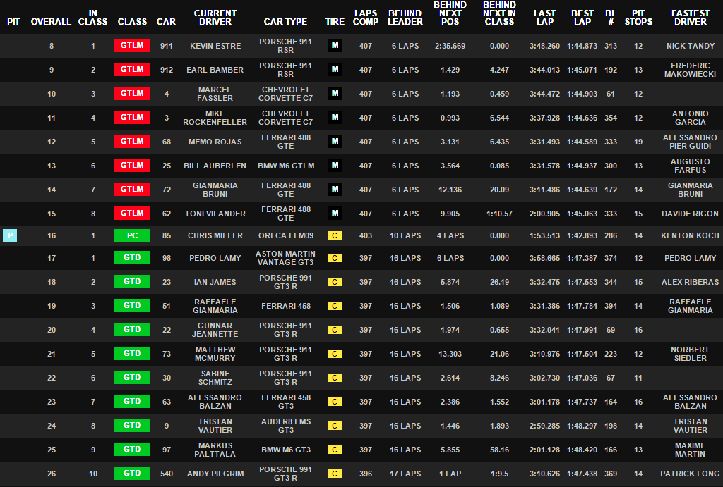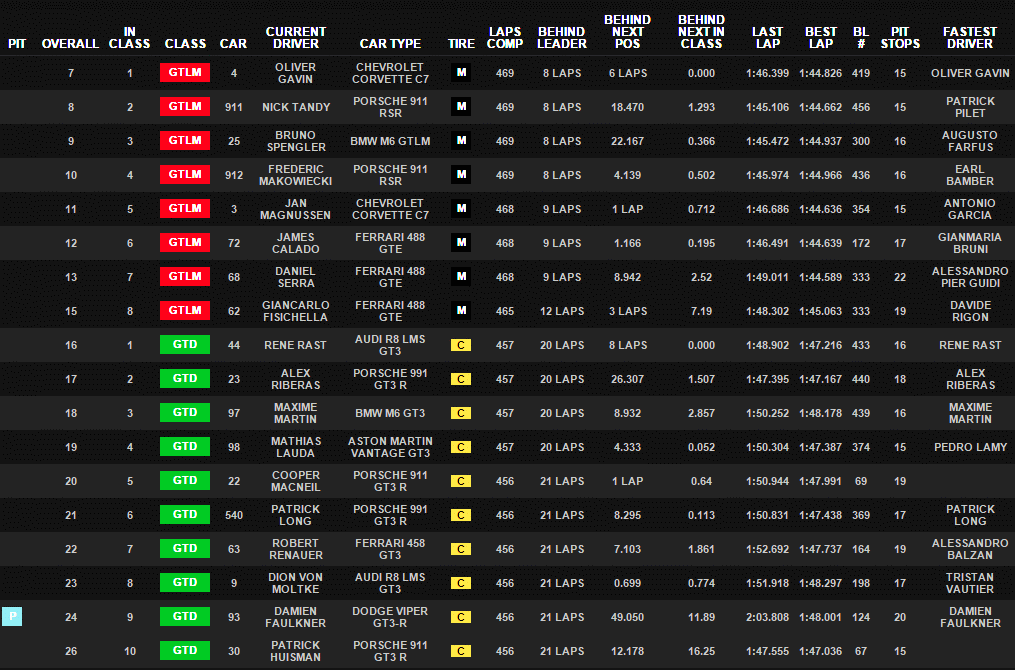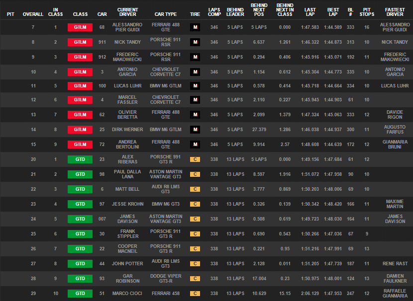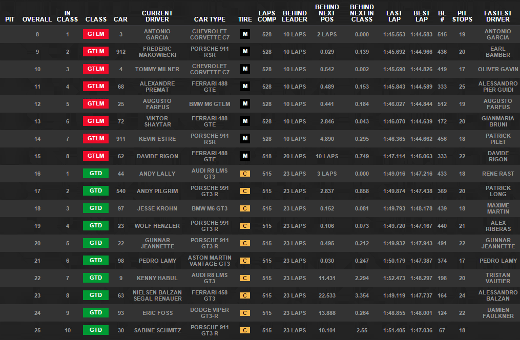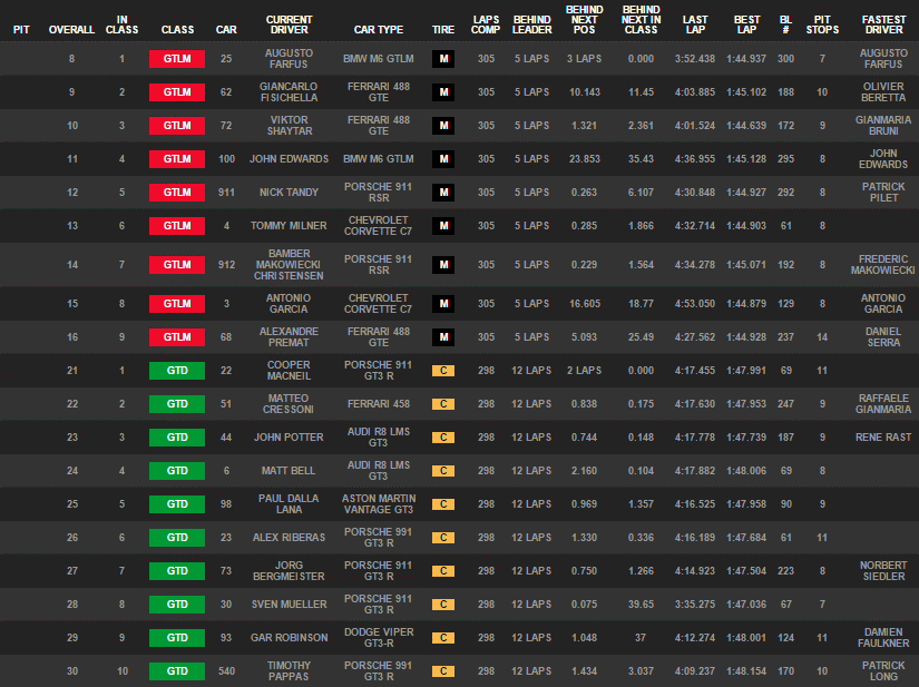 Klasse GTLM. In der Fahrermeisterschaft der bedeutendsten Sportwagenserie auf dem nordamerikanischen Kontinent verbesserten sie sich dadurch auf Rang