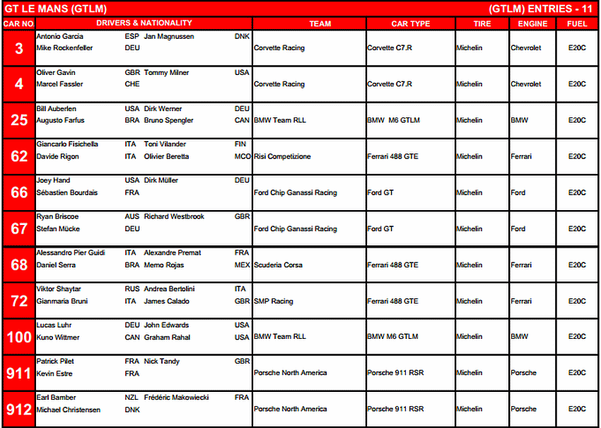 die siebtschnellste Zeit in der Klasse GTLM. Seine Teamkollegen im Rennen am Samstag sind Le-Mans-Sieger Nick Tandy (Großbritannien) und Kévin Estre