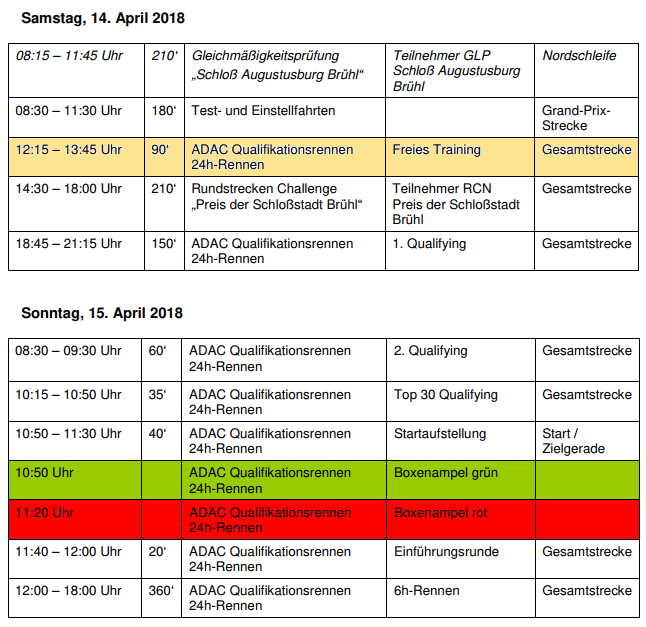 Eine andere Termin-Kollosion wird es mit dem Formel 1 Lauf in Barcelona geben (am 13. Mai); allerdings ist die F1 keine wirkliche Konkurrenz zu den 24h Nürburgring am selben Wochenende.