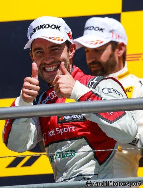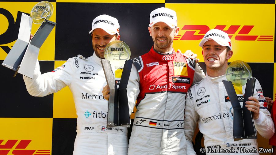 Seinen insgesamt vierten Sieg in der DTM holte der Titelverteidiger mit einer riskanten Strategie: Von Startplatz drei ins Rennen gegangen, wechselte der Deutsche schon nach der ersten Runde die Reifen und zog mit dieser Strategie an Gary Paffett (Mercedes-Benz) und Philipp Eng (BMW) vorbei. Nachdem auch Paffett seinen Boxenstopp absolviert hatte, konnte Rast seinen Vorsprung auf knapp drei Sekunden ausbauen, ehe eine Safety-Car-Phase seinen Vorsprung zunichtemachte. Doch auch beim Restart behauptete er die Führung und verteidigte Platz eins gegen den Tabellenführer bis ins Ziel.