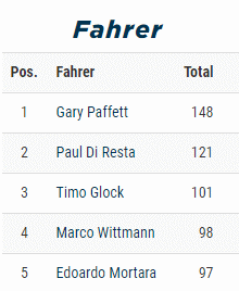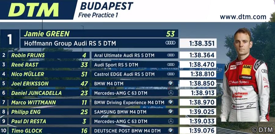 In der DTM-Fahrwertung hat Paffett seine Führung weiter ausgebaut. Zur Saisonhalbzeit liegt der DTM-Champion von 2005 mit 127 Punkten auf Platz eins vor Paul Di Resta (106), der sich um drei Positionen verbessern konnte. Timo Glock wurde im Rennen Sechster und belegt vor dem Rennen am Sonntag mit 100 Punkten Platz drei. Das zehnte DTM-Saisonrennen, das zweite in Zandvoort, startet am Sonntag wie gewohnt um 13:30 Uhr. SAT.1 überträgt ab 13 Uhr live aus den Niederlanden. In Österreich ist ORF eins ab 13:15 Uhr auf Sendung. In der Schweiz zeigt MySports das Rennen live.