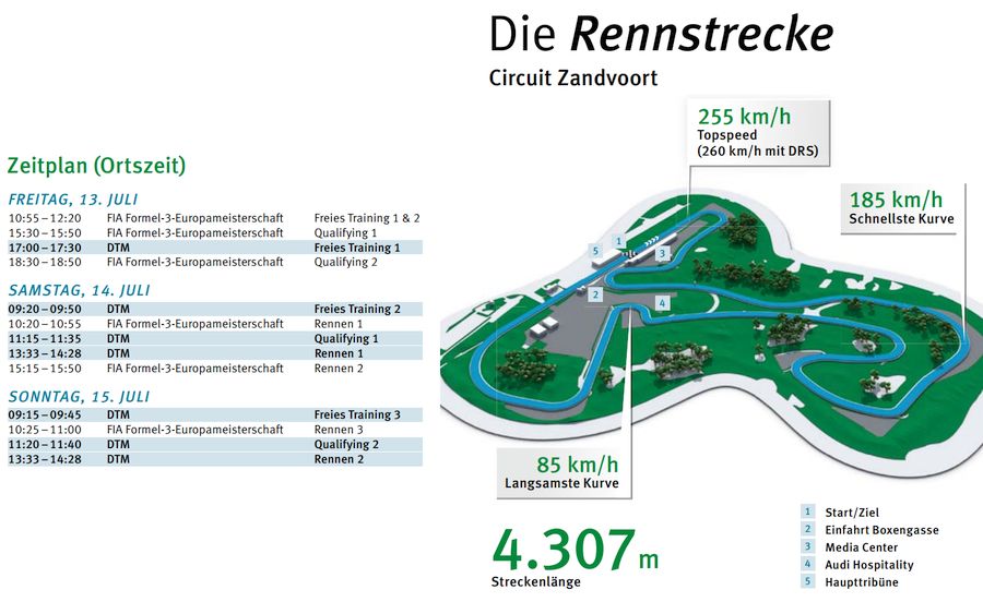 Das zweite Freie Training am Samstag beginnt um 9:20 Uhr. Im ersten Qualifying geht es in Zandvoort ab 11:15 Uhr um die besten Startplätze für das erste Rennen. Die Zeitenjagd an der niederländischen Nordseeküste wird im Livestream auf DTM.com/live und in den DTM-Apps für iOS und Android übertragen. TV-Partner SAT.1 sendet ab 13 Uhr live aus den Niederlanden, der Rennstart ist um 13:30 Uhr.