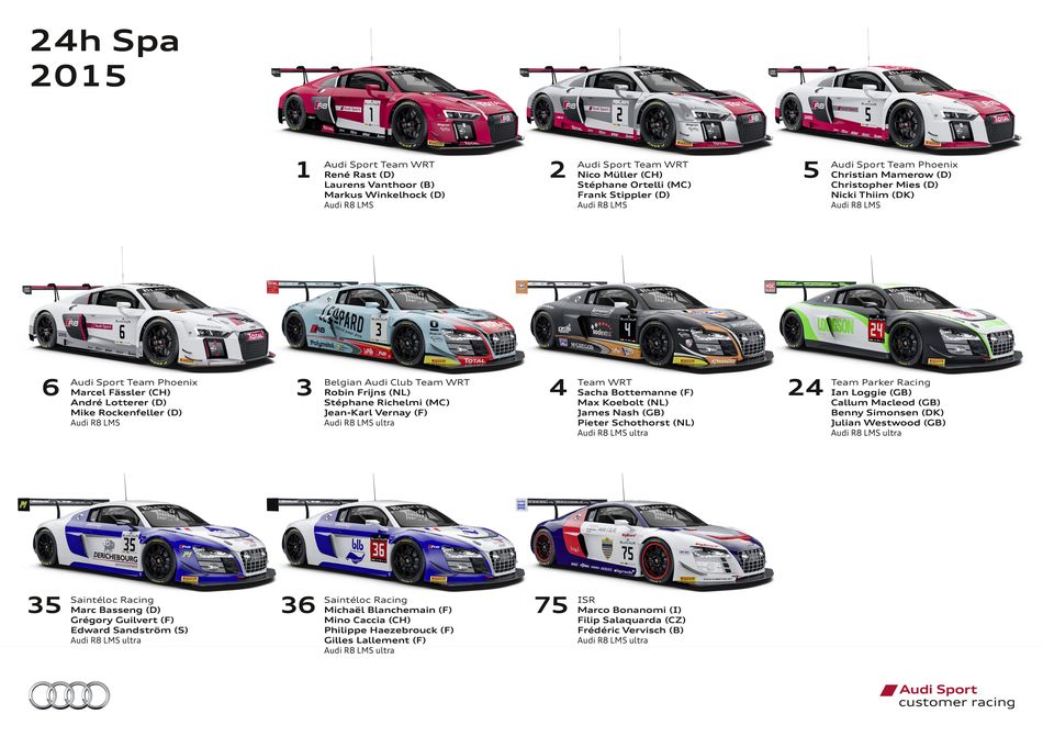 Seinen ersten Einsatz mit dem R8 LMS ultra absolvierte das Team im Juli bei den 24 Stunden von Spa, am 13. Dezember stellt sich die Mannschaft mit dem Fahreraufgebot Aditya Patel (IND), Jiri Pisarik (CZ) und Filip Salaquarda (CZ) den Gulf 12 Hours in Abu Dhabi.
