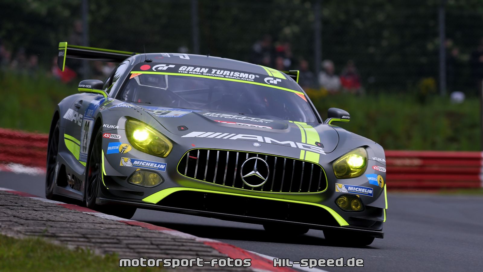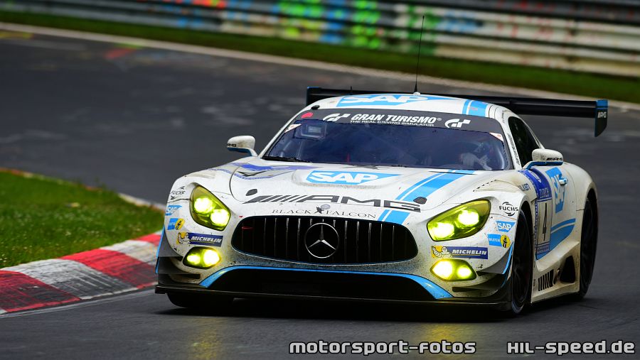 Beide Autos hatten einen guten Start in das 24h-Rennen am Samstagnachmittag und konnten von Beginn an Plätze gut machen. In der fünften Runde wurde das Rennen unterbrochen, da ein heftiges Unwetter die Nordschleife mit Regen und Hagel kurzzeitig lahmlegte. Um 19:00 Uhr erfolgte der Re-start und von da an arbeiteten sich die AMG-Team HTP Motorsport-Piloten immer weiter nach vorne an die Spitze.