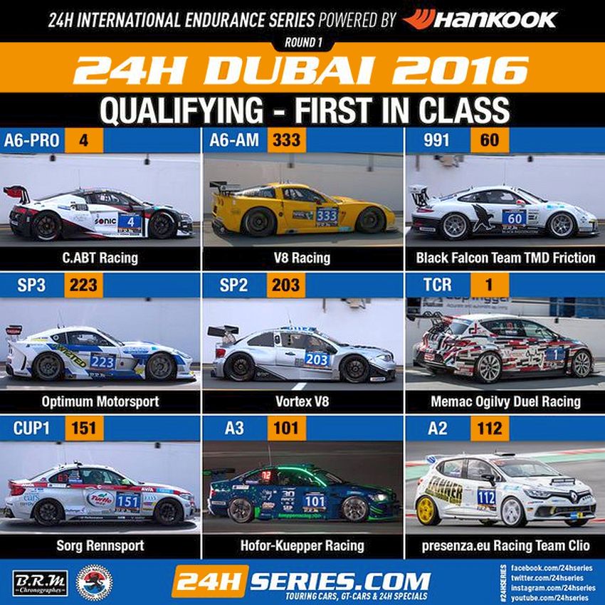 | A6 | 2 | Black Falcon / Germany | Mercedes AMG GT3 (6200cc) | Khaled Al Qubaisi / Jeroen Bleekemolen / Patrick Assenheimer / Manuel Metzger |