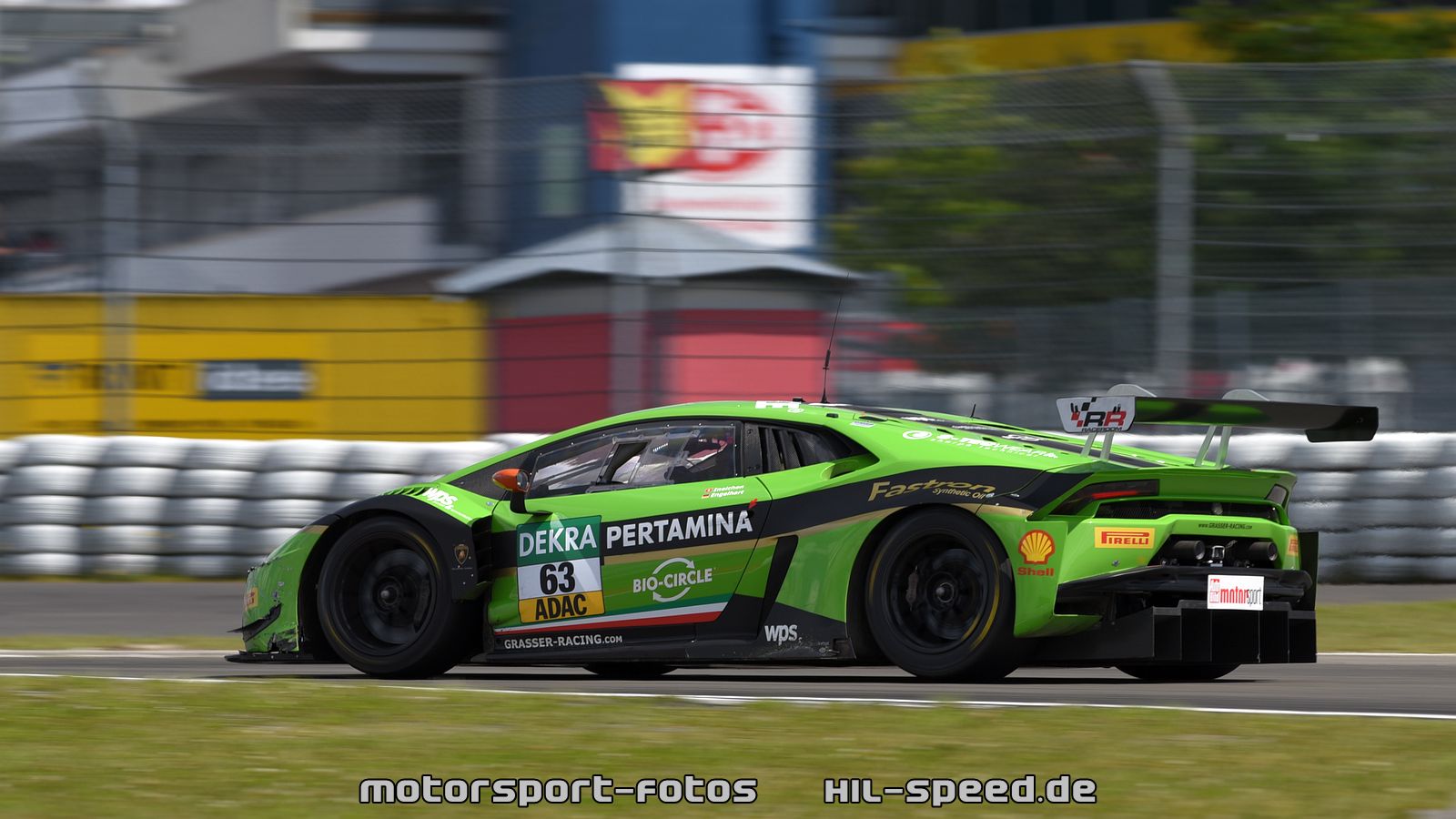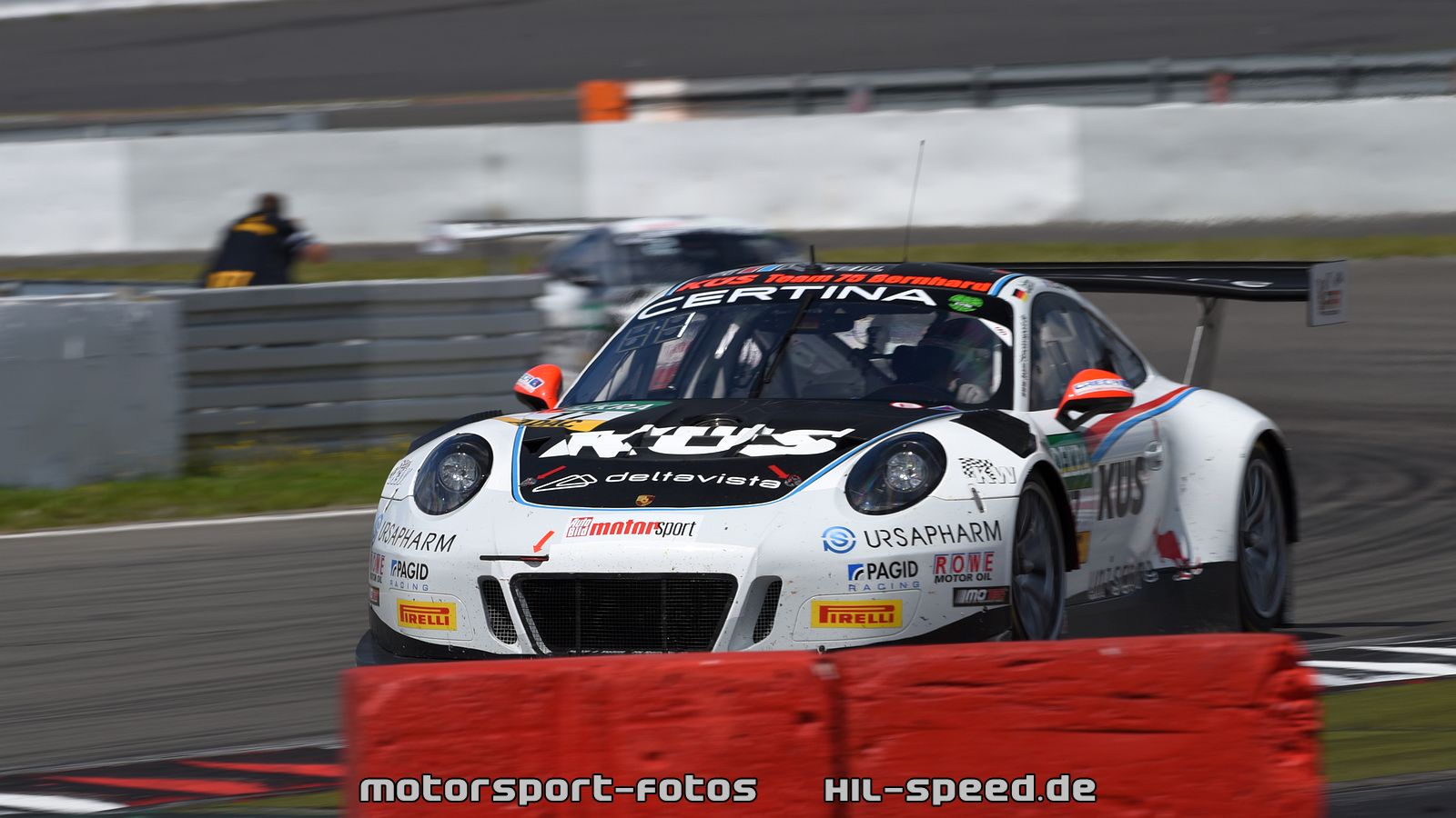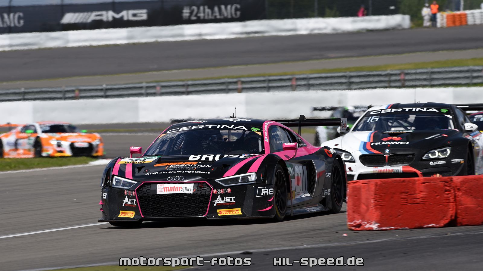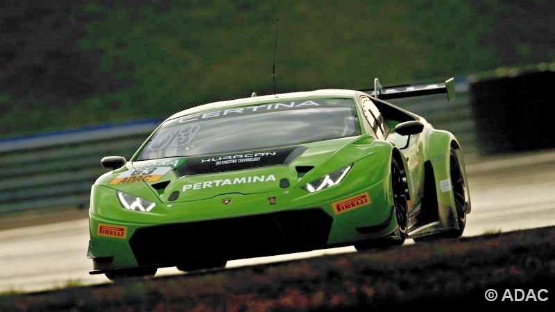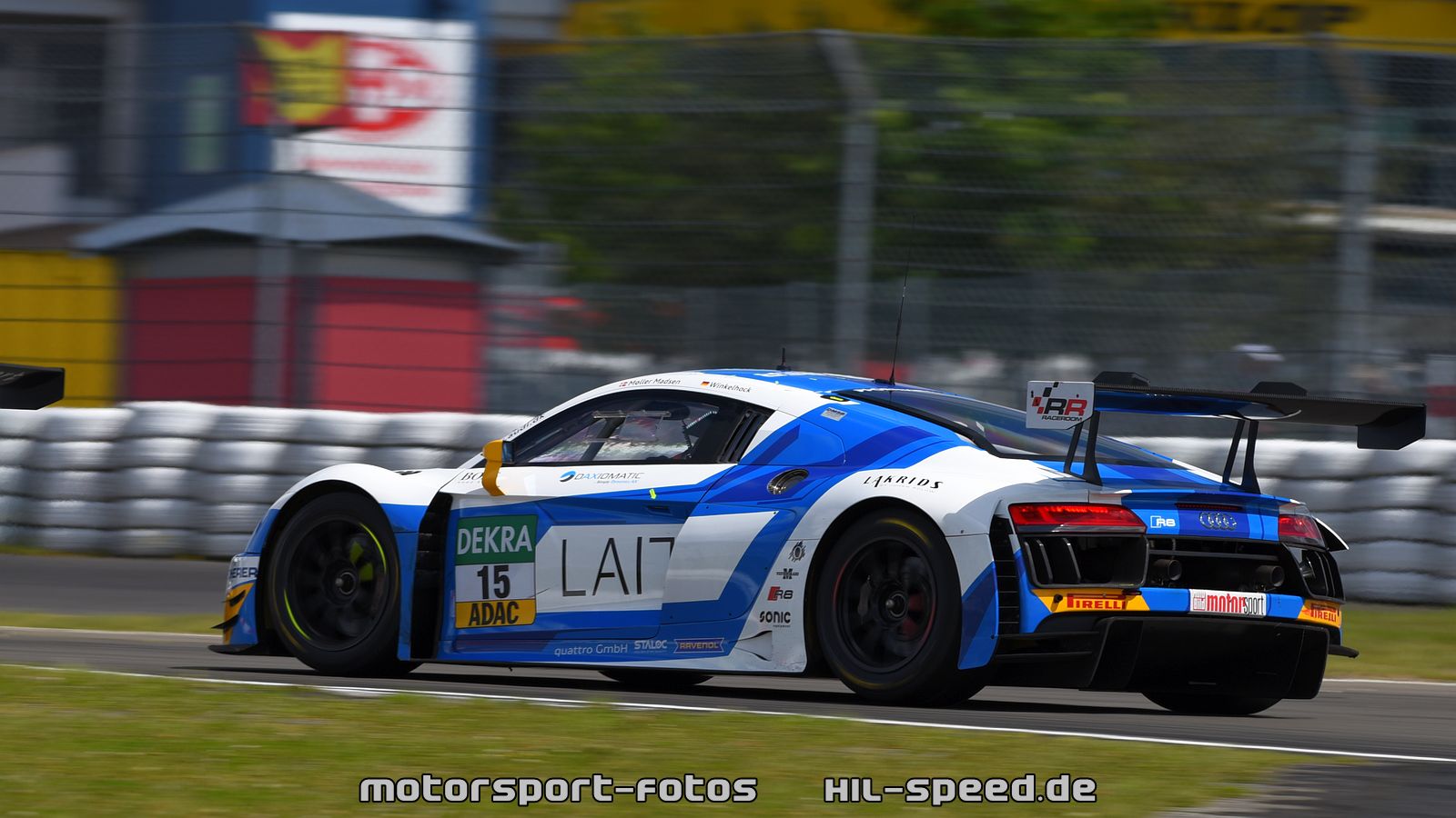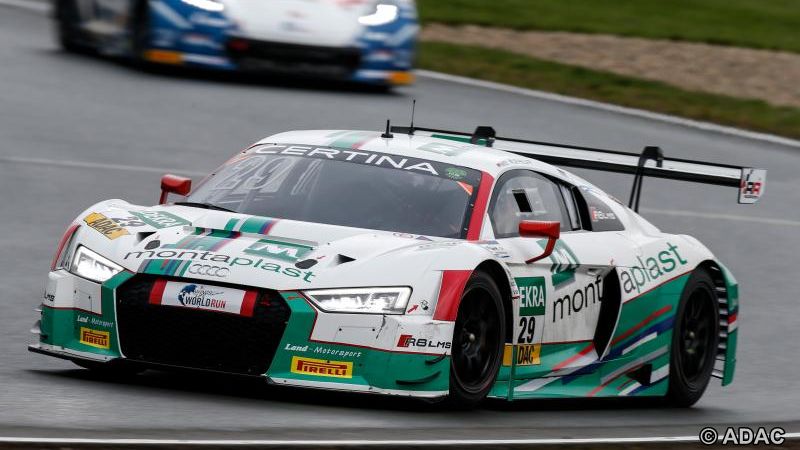 Norbert Siedler auf Lamborghini Huracan [# 5] legte eine 1:29,070 vor, dann kam nach 4 Runden 'Rot': Audi-Pilot Kelvin van der Linde rutschte in der