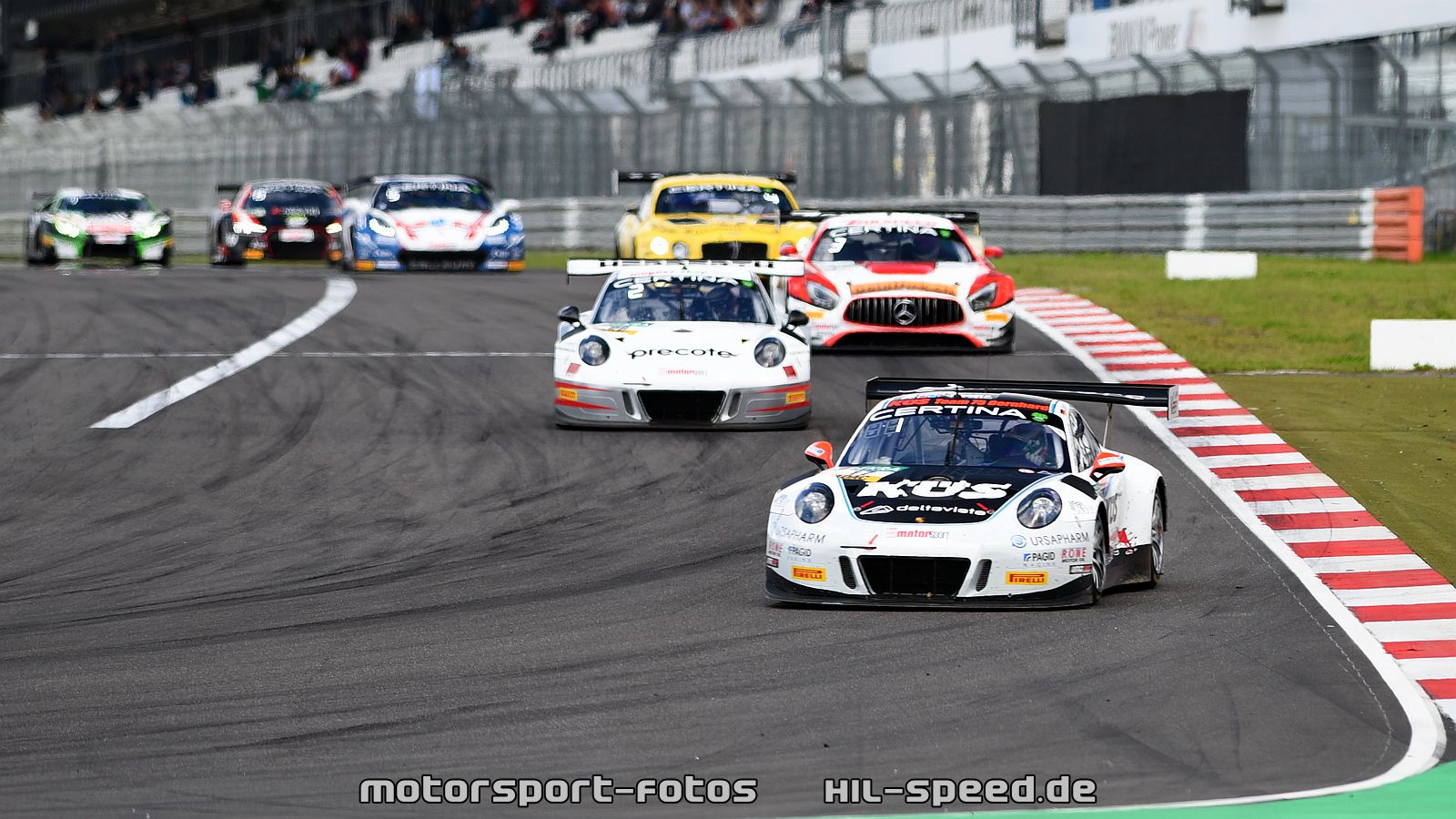 Die Ränge sieben und acht gingen an die beiden Lamborghini Huracán von Siedler und Teamkollege Jaap van Lagen (39, NL/HB Racing WDS Bau) sowie von Rolf Ineichen