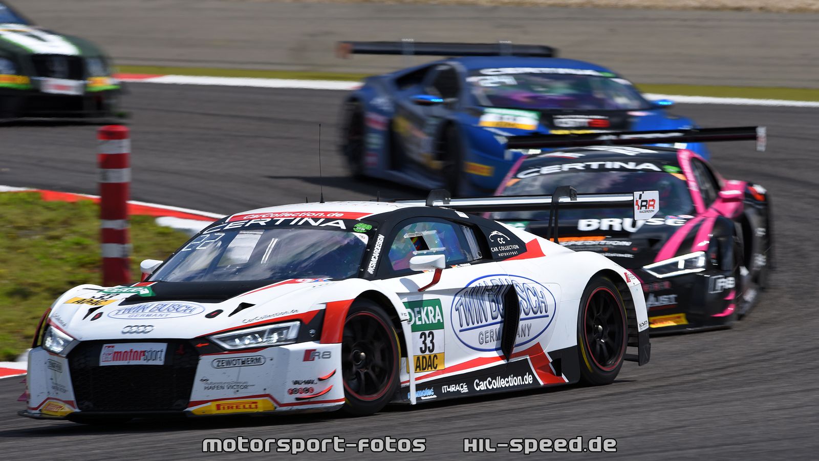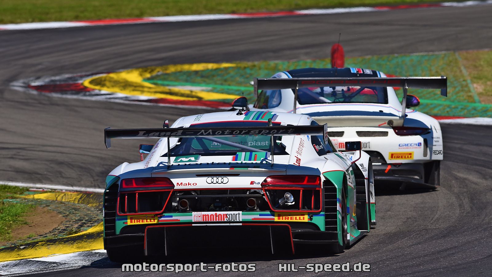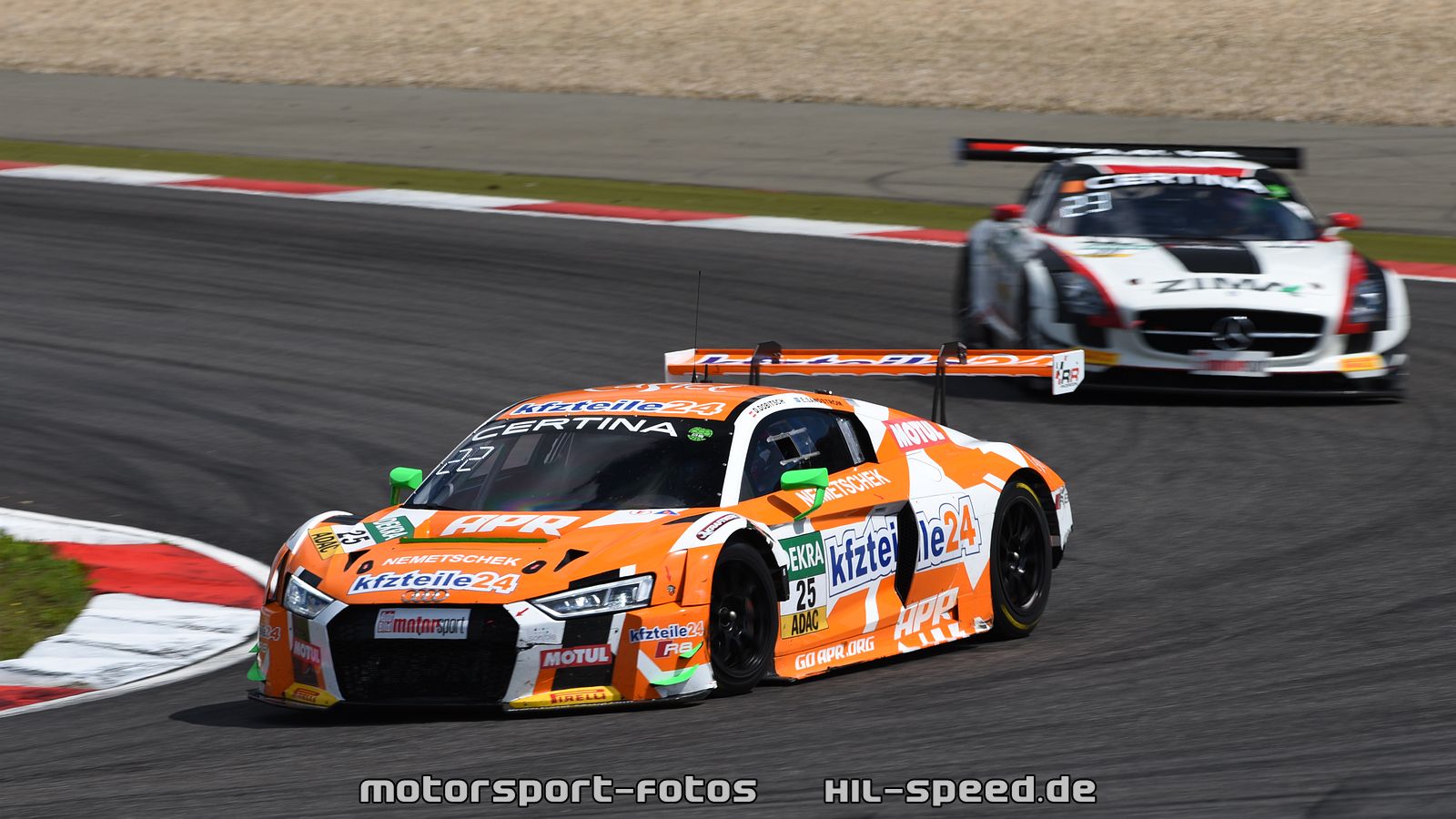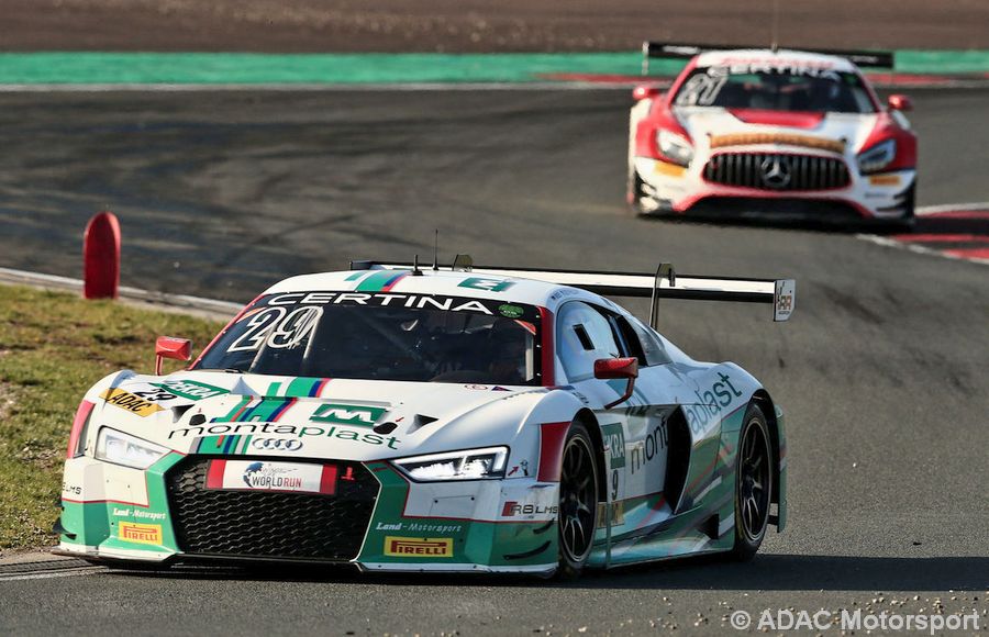 Die Audi-Mannschaften zeigten sich zum Auftakt in der Eifel stark. Mit knapp drei Zehntelsekunden Rückstand belegte der R8 von Serienneuling Nicolaj Møller Madsen (23, DK) und Markus Winkelhock (36, Berglen-Steinach/beide Phoenix Racing) den zweiten Rang. Platz drei ging an den Audi von Florian Stoll (35, Rickenbach) und Laurens Vanthoor (25, B/beide kfzteile24 APR Motorsport). Auf Rang vier folgten die aktuell Tabellenvierten Rolf Ineichen (38, CH) und Christian Engelhart (29, Kösching/beide GRT Grasser-Racing-Team) im Lamborghini Huracán.