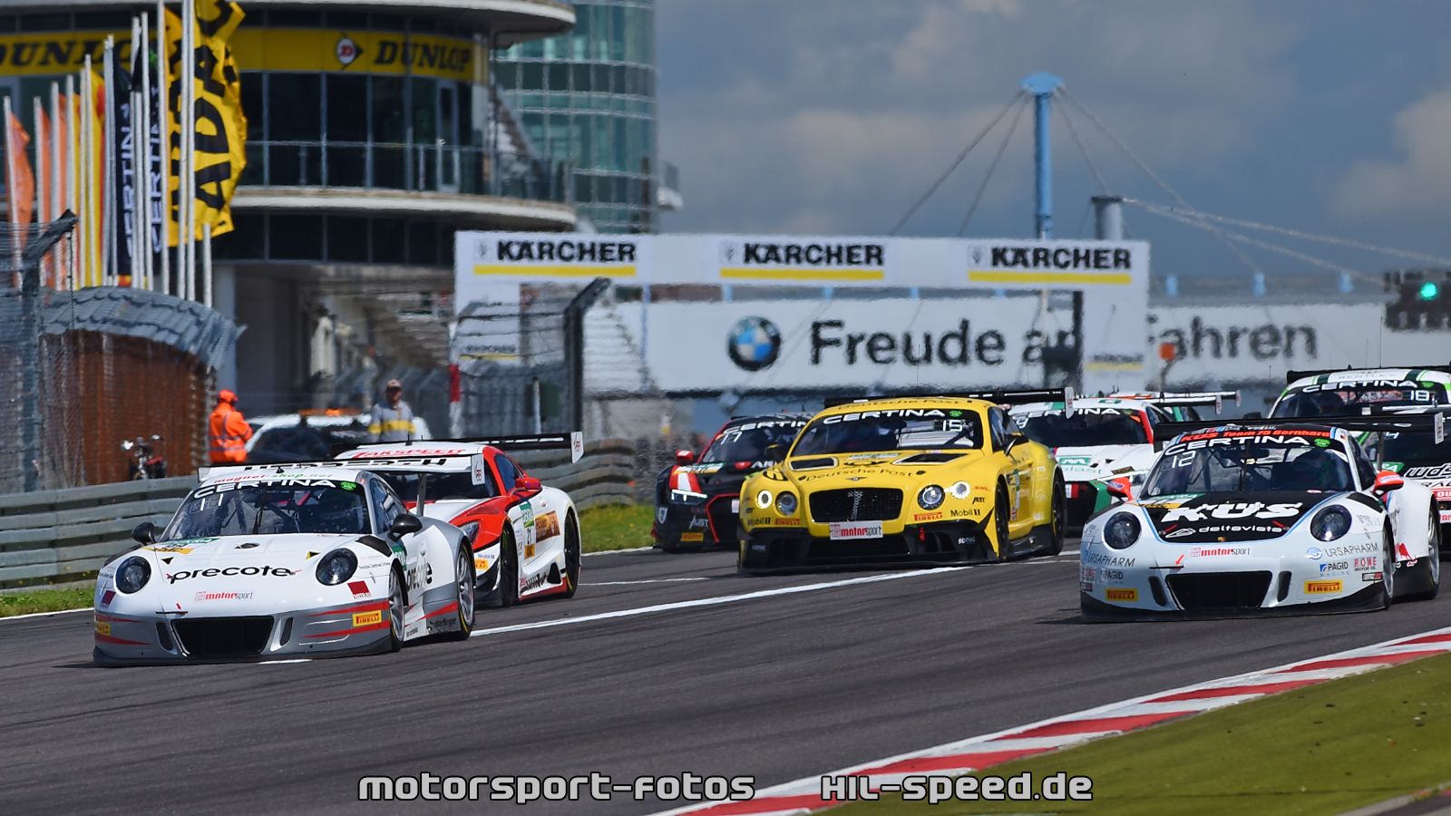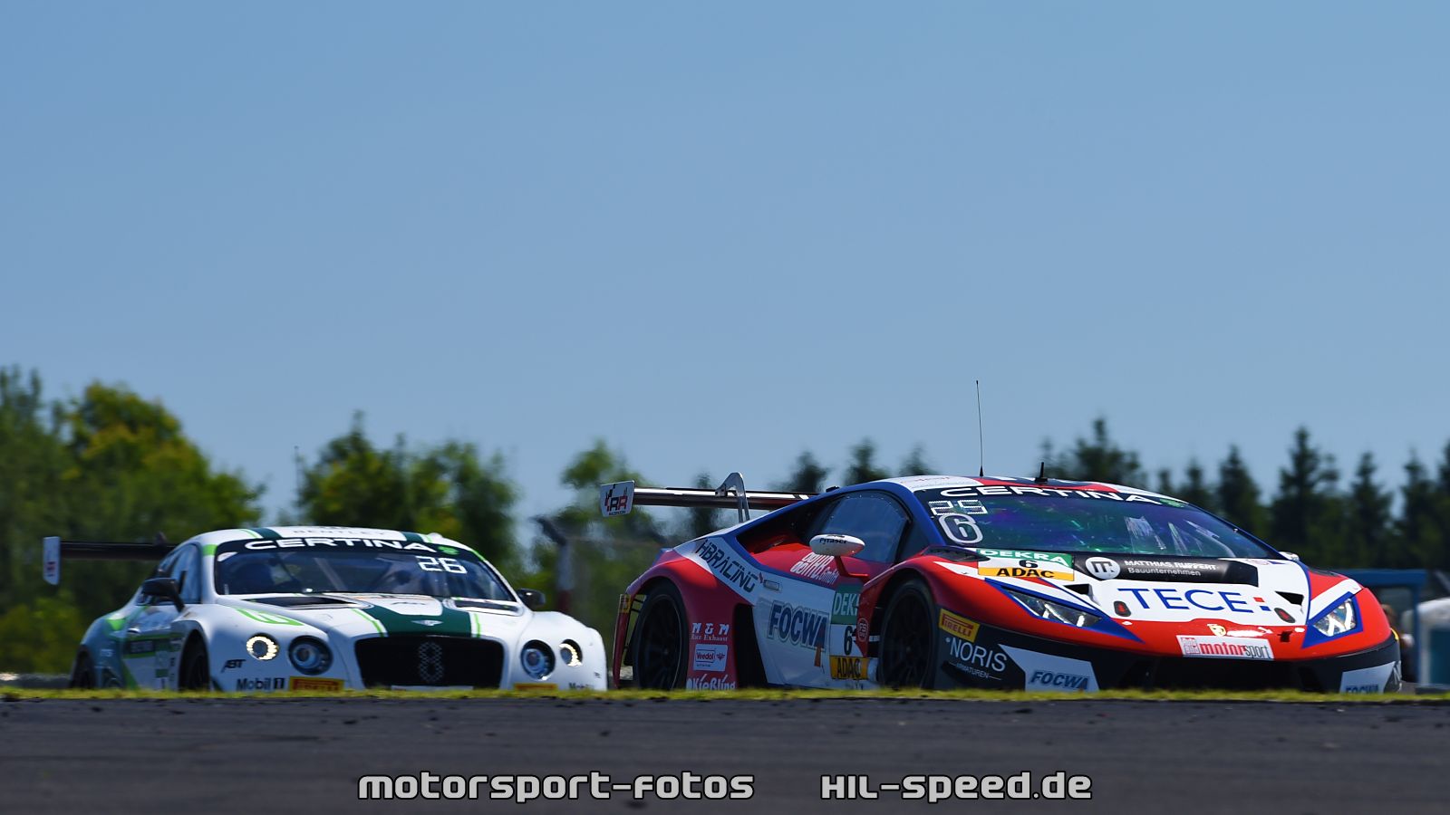 Audi vor Lamborghini auch auf den folgenden Rängen: Mikaela Åhlin-Kottulinsky (23, S) und Marco Bonanomi (31, I/beide Aust Motorsport) belegten Platz fünf, Norbert Siedler (33, A) und Jaap van Lagen (39, NL/beide HB Racing WDS Bau) Position sechs. Hinter zwei weiteren Audi von ADAC GT Masters-Debütant Dennis Busch (28, Bensheim) und Christopher Haase (28, Kulmbach/beide Car Collection Motorsport) sowie Peter Hoevenaars (21, NL) und Frédéric Vervisch (30, B/beide Montaplast by Land-Motorsport) komplettierten Fabian Hamprecht (21, Hagen)/Christer Jöns (29, Ingelheim/beide Bentley Team ABT) im besten Bentley Continental und Nicolai Sylvest (19, DK)/Nikolaj Rogivue (20, CH/beide AMG-Team Zakspeed) im Mercedes-AMG die Top Ten.