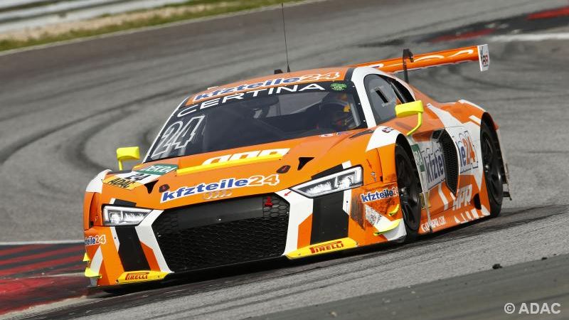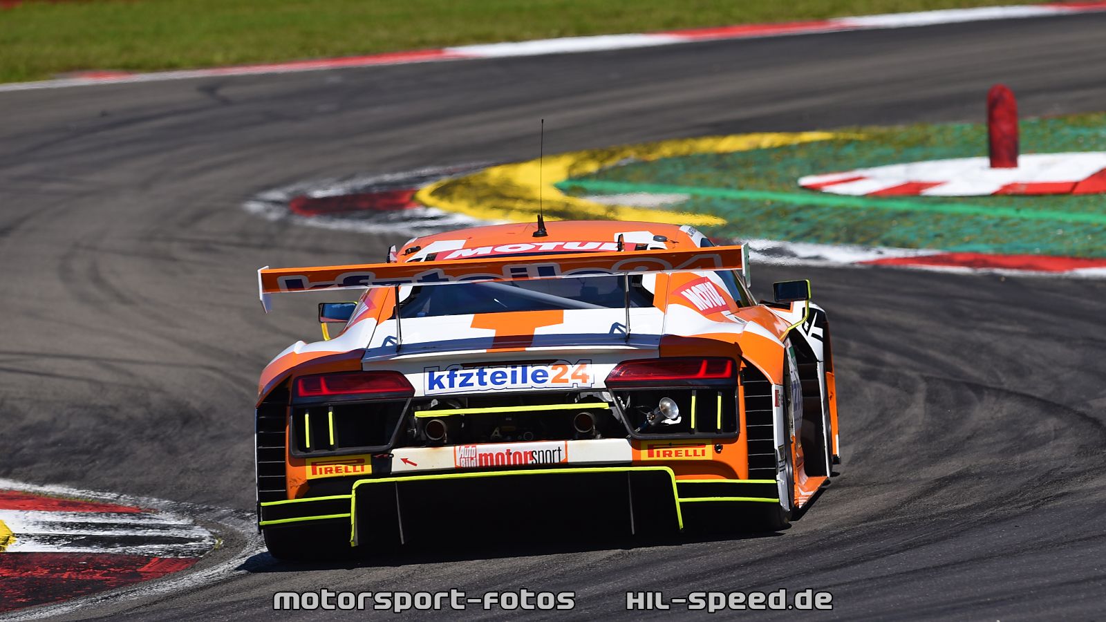 Audi R8 LMS im bekannten orangefarbenen Design von Partner kfzteile24 an den Start.