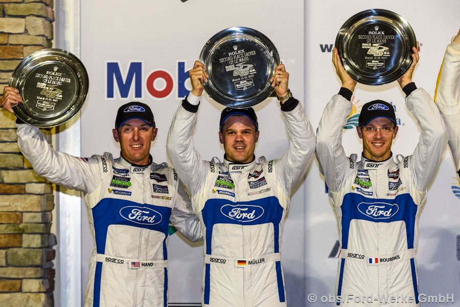 Die Leistungsdichte in der Klasse GTLM, das hat dieses Rennen gezeigt, ist enorm. Keines der Fahrzeuge der fünf in dieser Kategorie engagierten Automobilhersteller konnte sich im Verlauf des Rennens entscheidend absetzen. Als am Sonntag die Sonne aufging, lag das Feld noch so dicht zusammen wie vor der Nacht. Beide 911 RSR hatten sich mit konstant schnellen Rundenzeiten eine gute Ausgangsposition gesichert, doch ein unplanmäßiger Boxenstopp mit einer Reparatur an der vorderen rechten Radaufhängung warf die Startnummer 912 vorzeitig aus dem Rennen um eine Podiumsplatzierung. Am Ende belegten Kévin Estre (Frankreich), Laurens Vanthoor (Belgien) und Richard Lietz (Österreich) den sechsten Platz. Dafür krönte ihr Teamkollege Patrick Pilet seinen tollen letzten Stint nach einem viele Runden andauernden Vierkampf mit Ford, Ferrari und Chevrolet mit dem verdienten zweiten Platz. Damit sicherte er Porsche auch eine gute Ausgangsposition im North American Endurance Cup, für den neben Daytona noch die Langstreckenklassiker Sebring, Watkins Glen und Petit Le Mans gewertet werden.