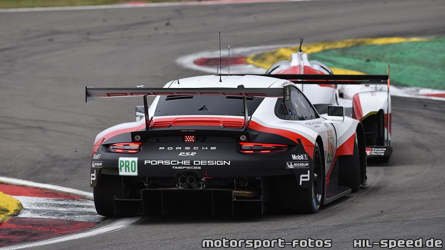hinter beide Toyota auf Position vier zurück. Nach einer Berührung mit dem Nummer-8-Toyota von Sébastian Buemi fehlt vorne rechts am Porsche ein Flap. Nach