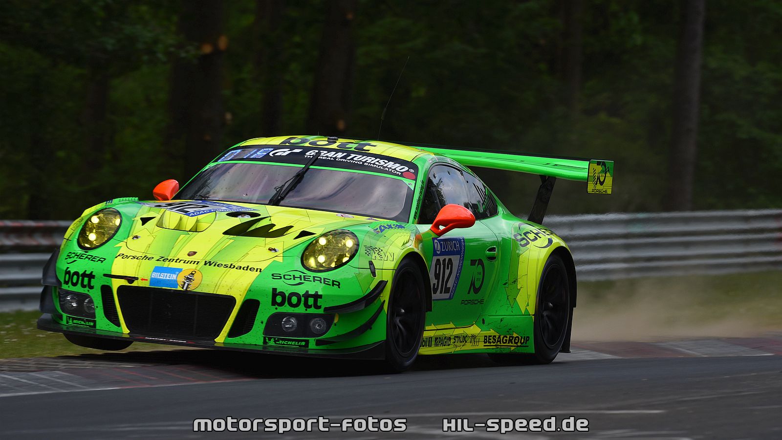 Der Porsche 911 GT3 R mit der Startnummer 912 hat nach einer spannenden Schlussphase den 24-Stunden-Marathon in der Eifel gewonnen. Der Neunelfer vom Team Manthey-Racing setzte sich 70 Minuten vor dem Rennende bei strömendem Regen an die Spitze des Feldes und gab diese Führung nicht mehr ab. Damit verbuchte Porsche beim legendären Langstreckenklassiker den ersten Sieg seit 2011 und feierte insgesamt den zwölften Erfolg.