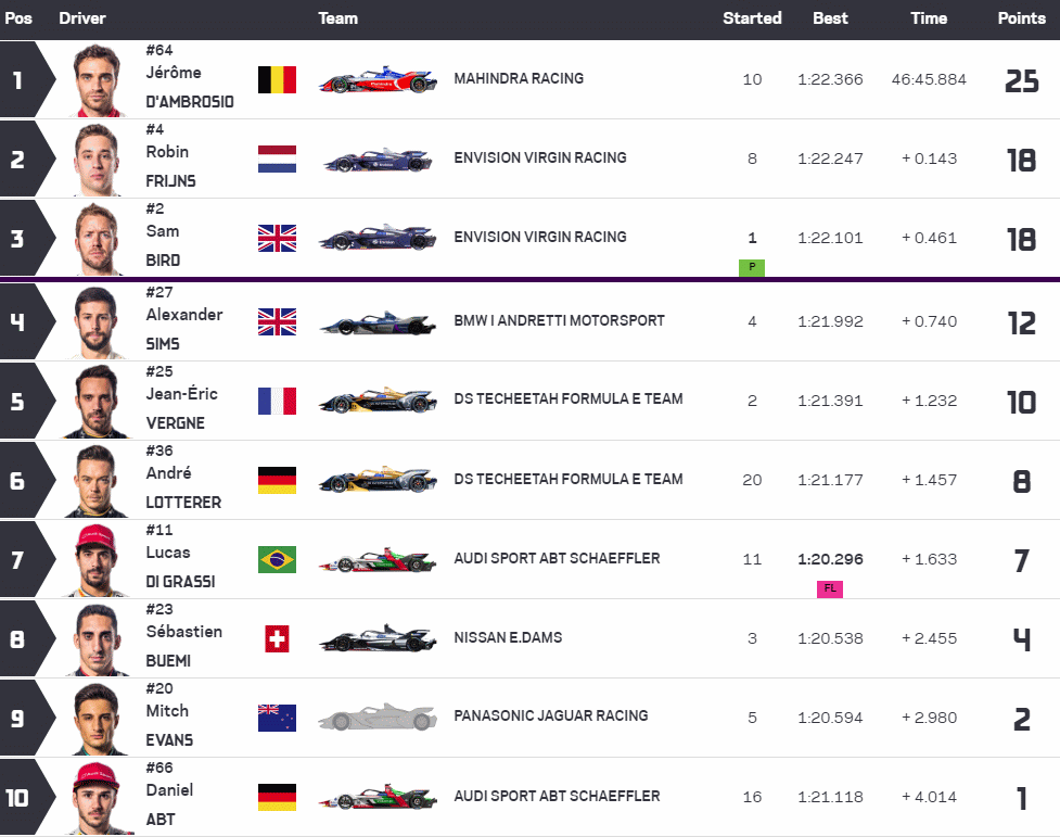 2. [# 25] Jean-Éric Vergne +0,462 Sek.