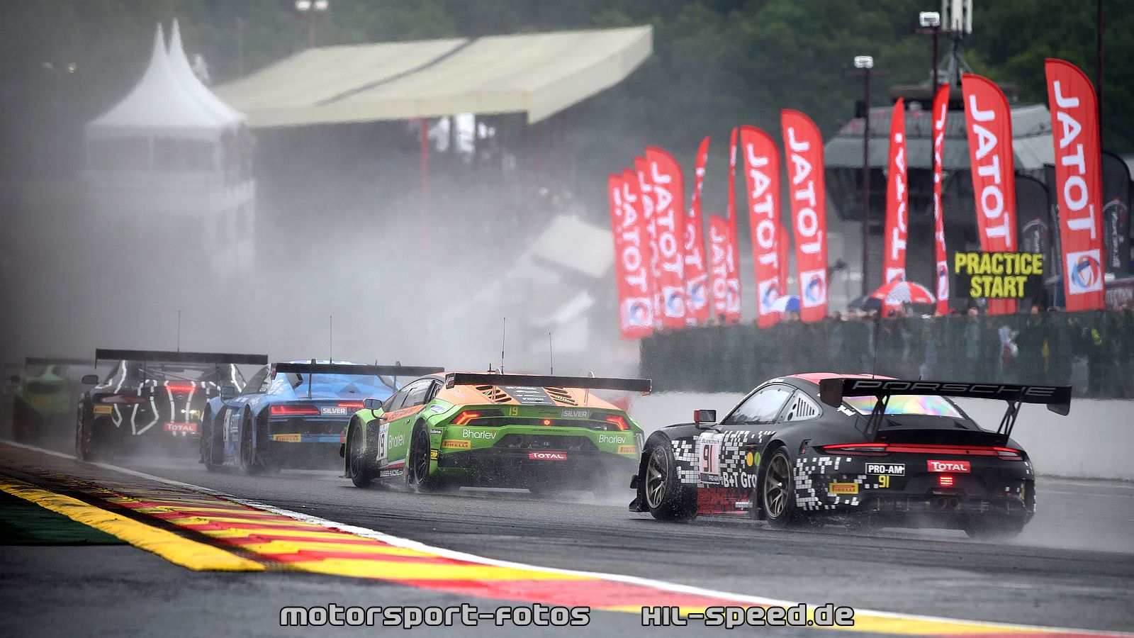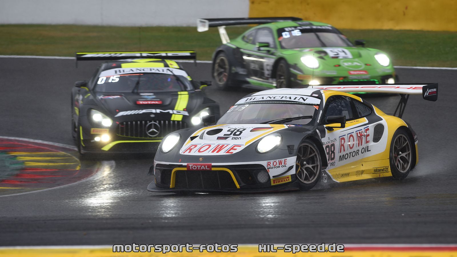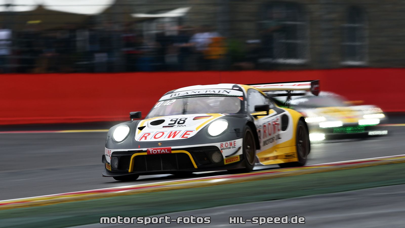 Ein starkes Gewitter mit heftigen Regenfällen veränderte die Reihenfolge an der Spitze rund zwei Stunden vor dem Rennende. Aufgrund notwendiger Tankstopps hinter dem Safety-Car, das wegen schwieriger Verhältnisse auf die Strecke geschickt worden war, fielen die beiden besten Porsche 911 GT3 R zunächst auf die Plätze drei und vier zurück. Die Rennleitung gab das Rennen jedoch 25 Minuten vor dem Ende noch einmal frei. Es folgte eine Demonstration der Stärke des GT3-Fahrzeuges aus Stuttgart auf nasser Strecke und eine eindrucksvolle Darstellung des Talents von Werksfahrer Nick Tandy. Der Brite, der das Auto mit der Startnummer 31 am Freitag auf die Pole-Position gefahren hatte, schob sich innerhalb einer Runde an die Spitze und baute seinen Vorsprung bis zur Zieldurchfahrt auf 6,746 Sekunden aus.