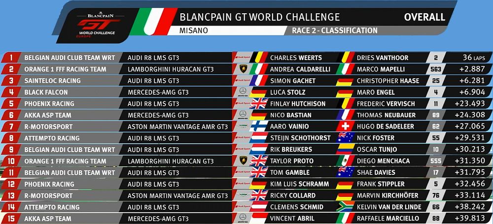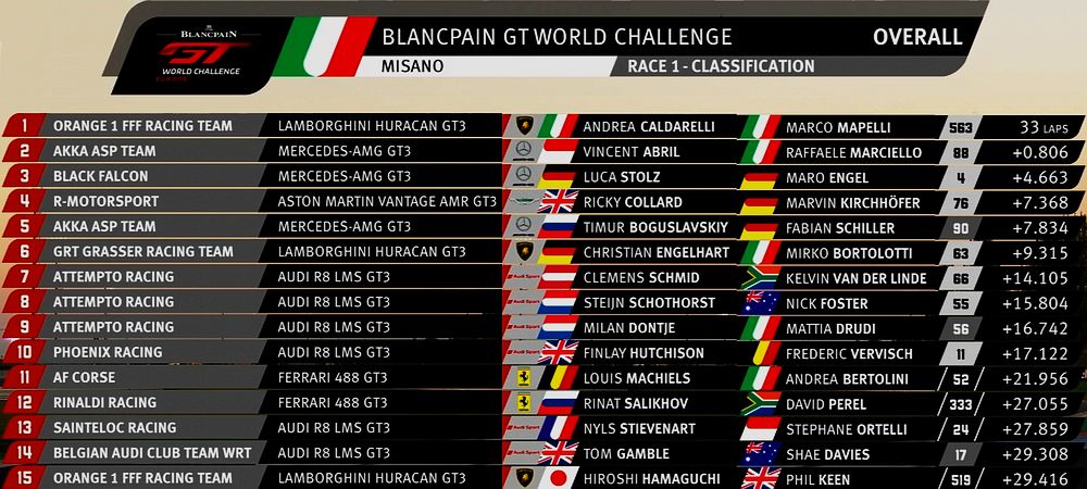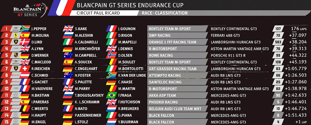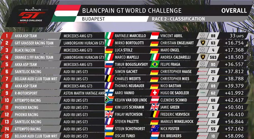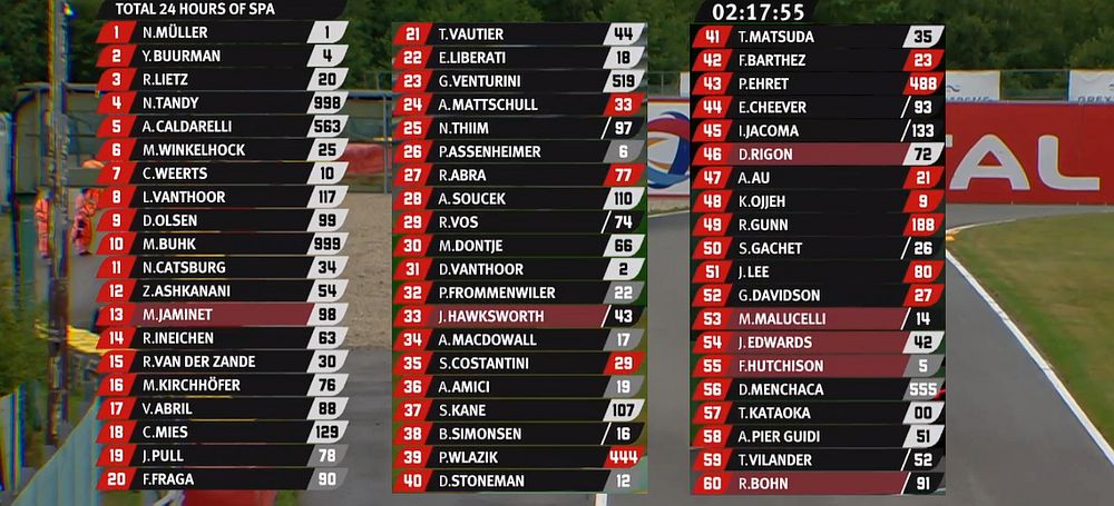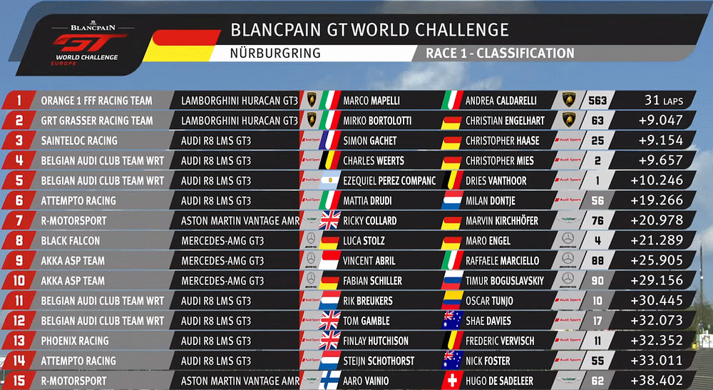 | 760 | A | R-Motorsport | Aston Martin Vantage GT3 | Jake Dennis / Matthieu Vaxiviere / Marvin Kirchhöfer |
