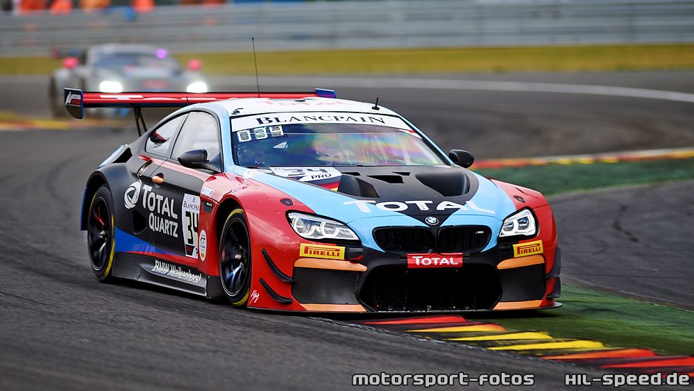 Die beiden BMW M6 GT3 konnten sich auch in der Folge in der Führungsgruppe behaupten. Zwei Stunden vor Schluss setzte wie schon an den Tagen zuvor starker Regen ein, der eine längere Safety-Car-Phase mit sich brachte, in der Tomczyk aufgrund von Boxenstopps der Konkurrenz im #42 BMW M6 GT3 die Führung übernahm. Als das Rennen rund 30 Minuten vor dem Ende wieder freigegeben wurde, musste das BMW Team Schnitzer jedoch selbst auch noch einen Boxenstopp absolvieren und fiel dadurch zunächst auf Rang zehn zurück. Dank einer starken Schlussphase konnte sich Farfus jedoch noch auf den siebten Rang verbessern. Im [# 34] BMW M6 GT3 hatte Catsburg seinen letzten Boxenstopp während der Safety-Car-Phase absolviert und konnte sich in den letzten Runden noch von Rang fünf auf Rang zwei nach vorn kämpfen. So brachte er den ersten Podestplatz der Saison ins Ziel.